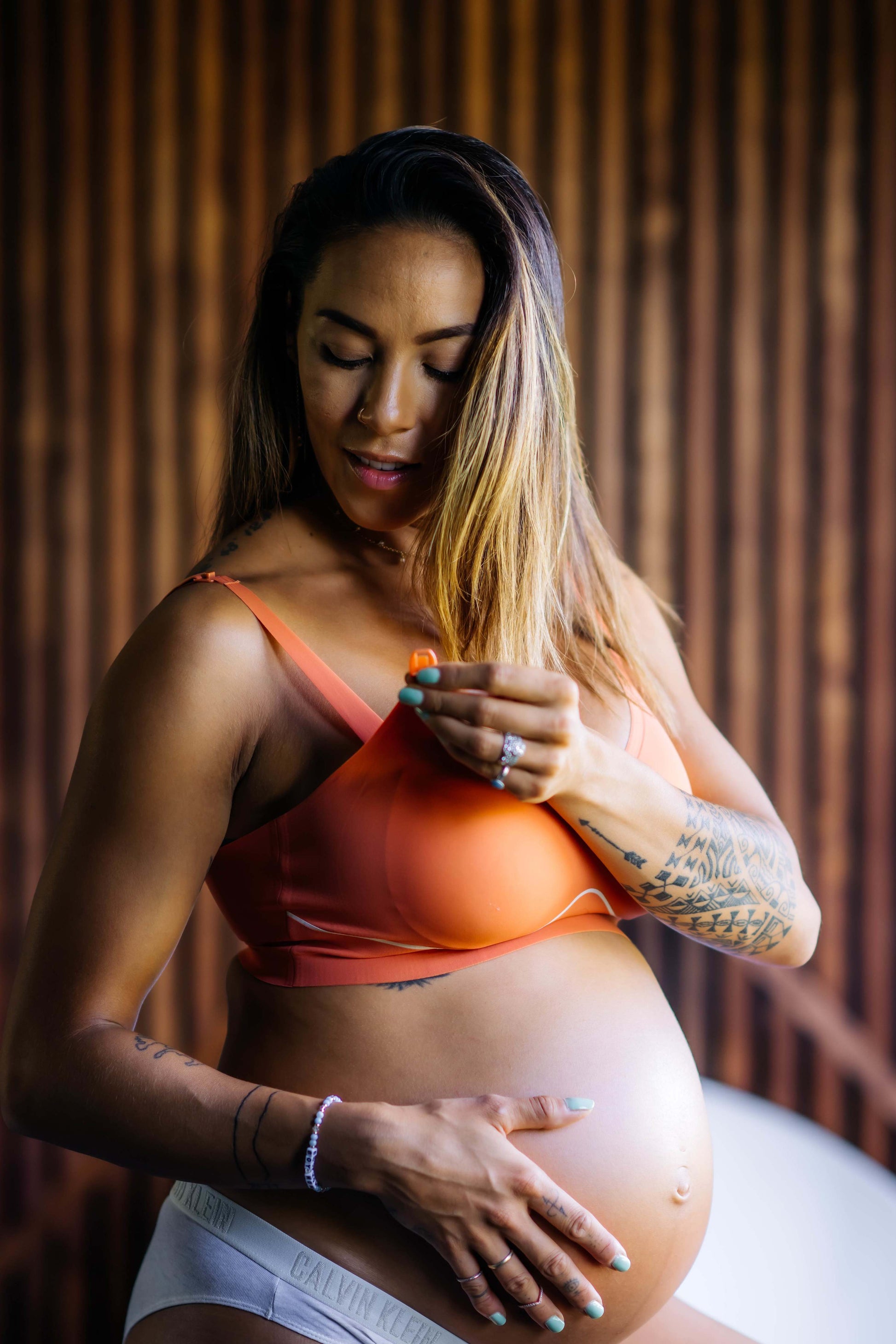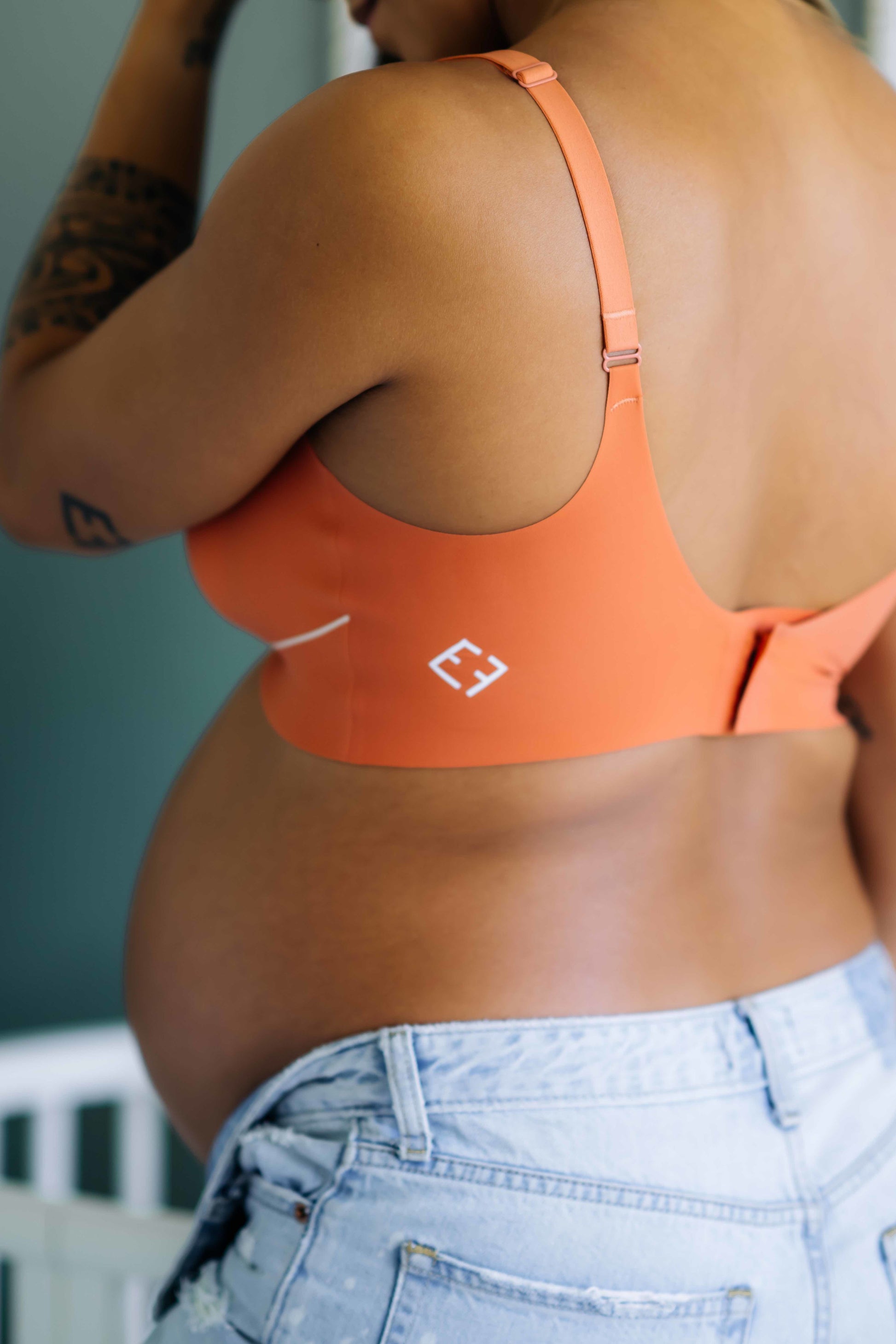 Part of Hannah's BumpFit maternity line, the Everything Bra is a high support nursing bra, appropriate for inside AND outside the gym. Featured in a fun orange color, feel supported and cute during this transitional time in your life!